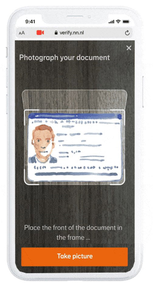 Check that your ID fits within the framework. You do this by holding your mobile phone further away or closer. Make sure there is enough light. Also make sure that no other personal data can be seen. Everything that can be seen on your phone's screen will be photographed. So also everything outside the box. Therefore, for example, use an empty table as a base.